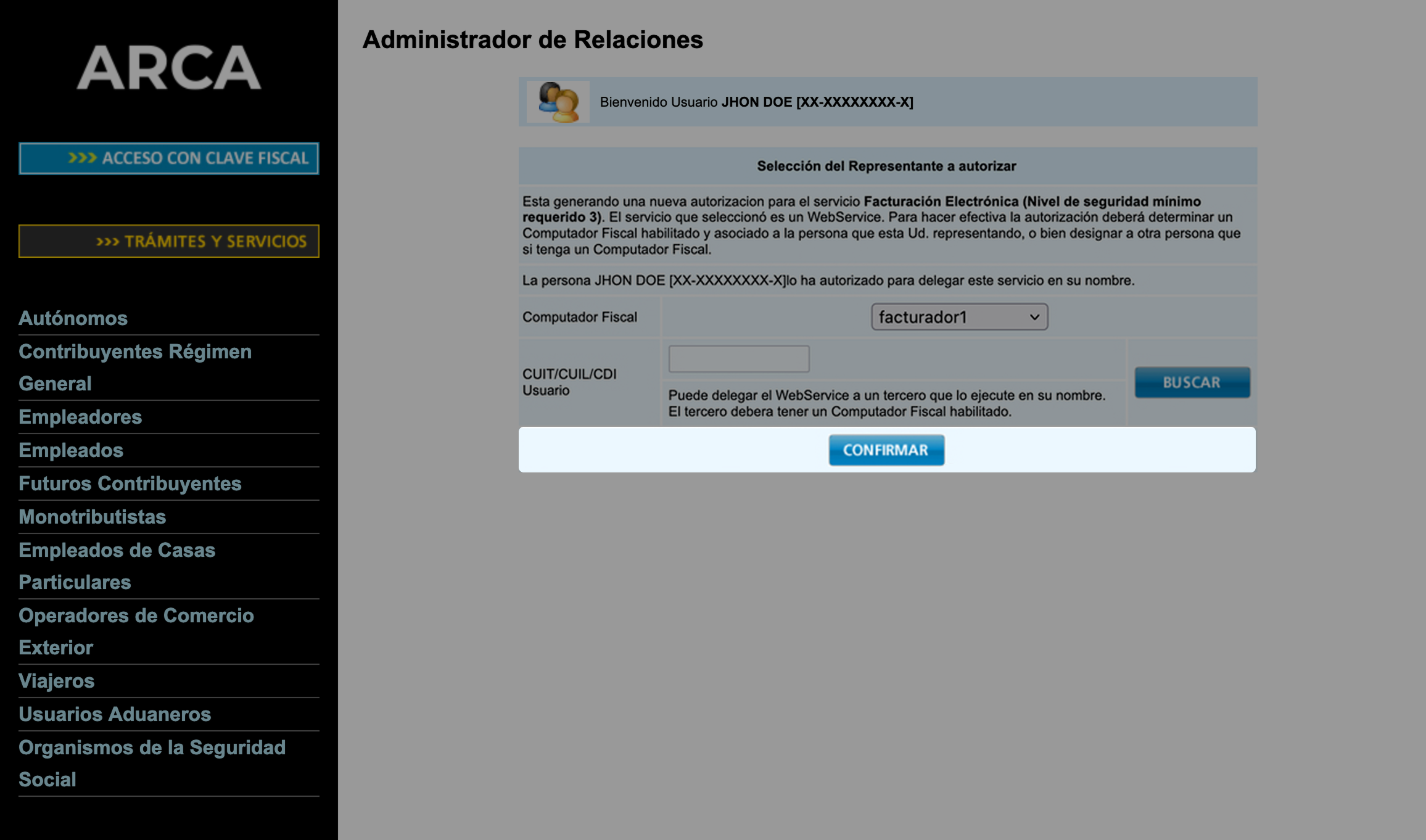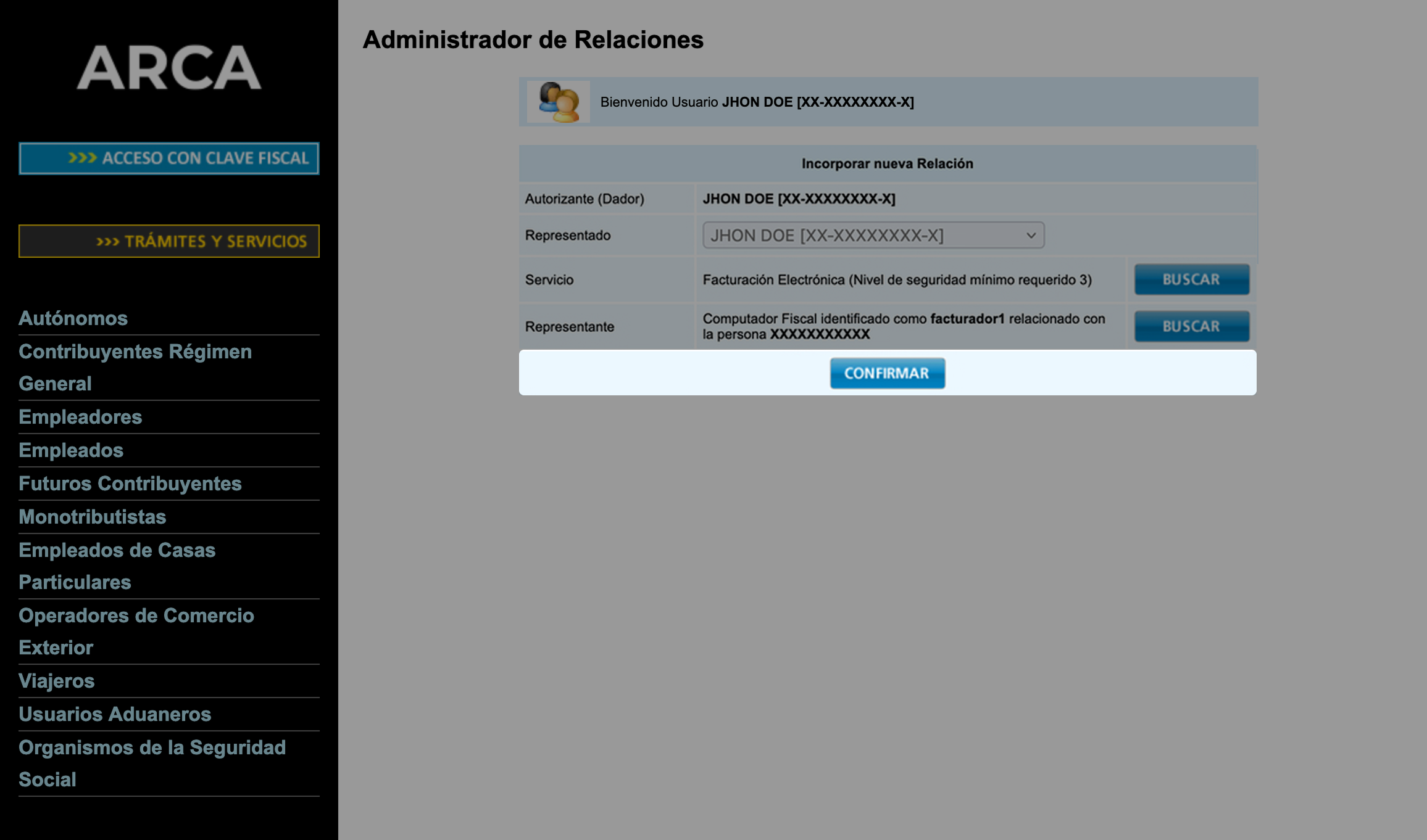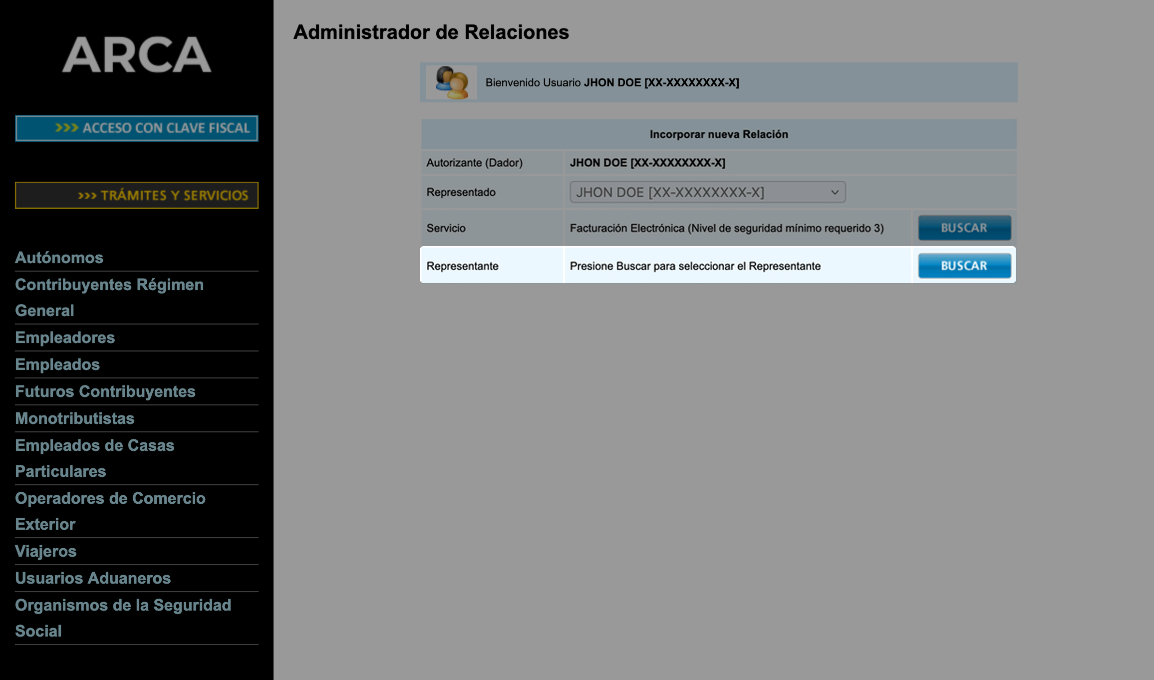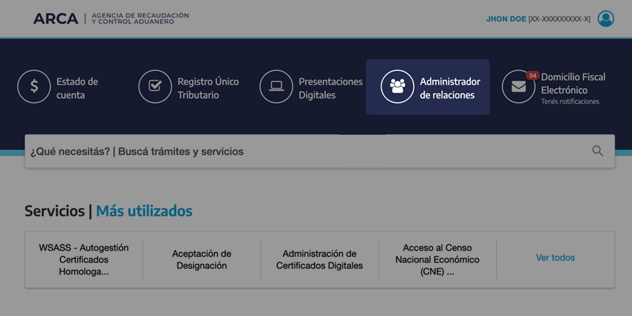 Desde el portal de ARCA, volvemos a ingresar en Administrador de Relaciones