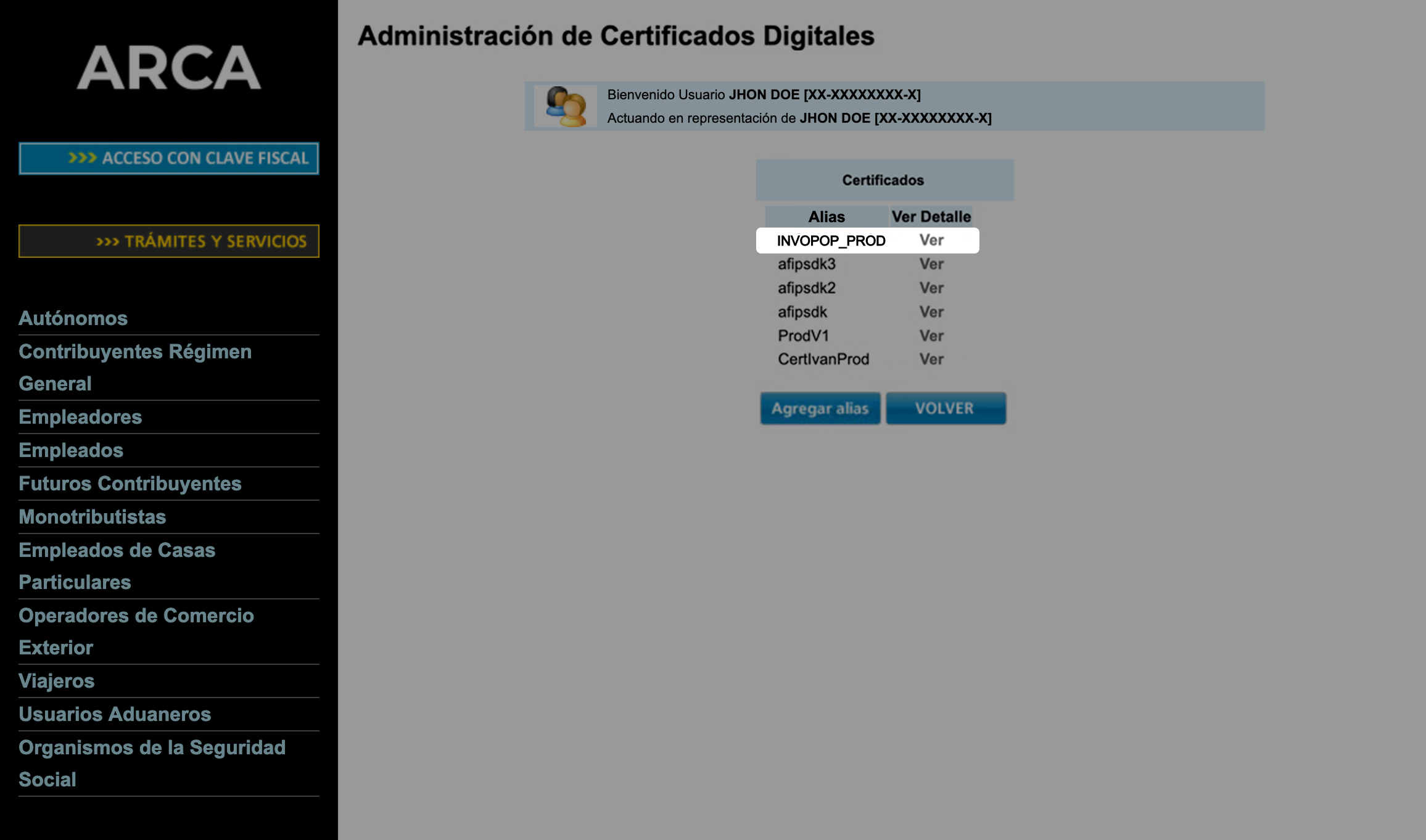 Al pulsar Confirmar tendremos acceso a la aplicación desde nuestro escritorio de ARCA.